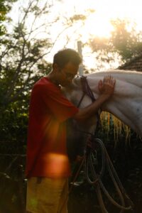 Born and raised in Auroville, I bring a multicultural, nature-based perspective into my work. I speak English, French, German, and Tamil, and honour non-verbal communication in every human-horse interaction.